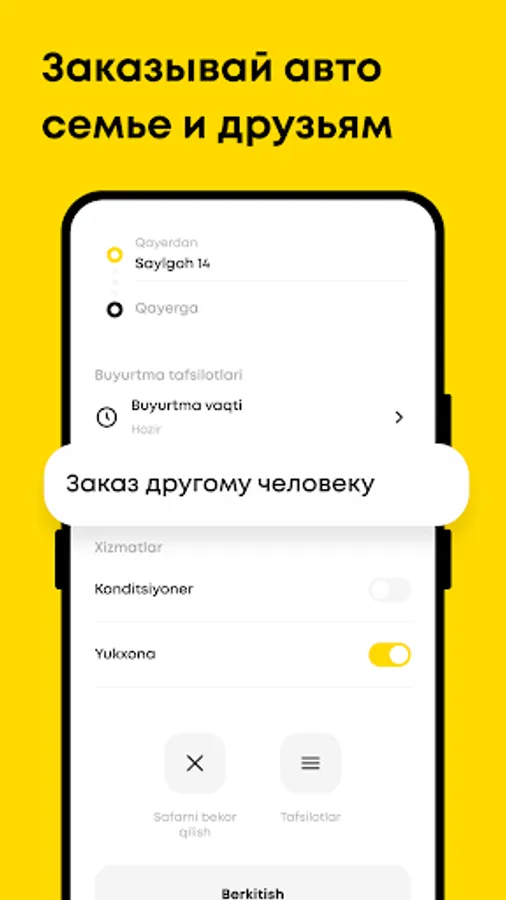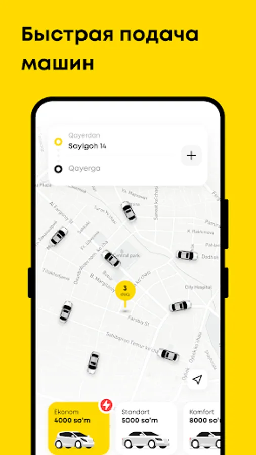 Turn a taxi into your personal city transport. The car will arrive where you say and take you where you want - you do not need to park or refuel. No calls to the dispatcher, just follow everything on the screen from the moment of ordering until the end of the trip.