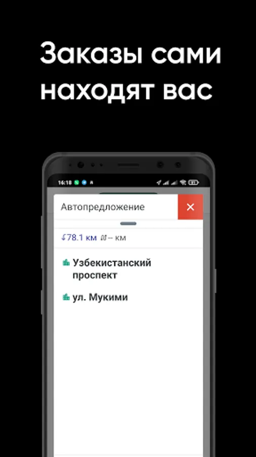 И вам больше не нужно искать или беспокоится о заказах, они найдут вас сами! Приложение подбирает для вас самый ближайший заказ, и таким образом, вы потратите меньше времени на дорогу и больше заработаете