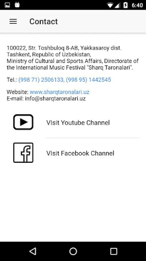 International Music Festival "Sharq Taronalari" ("Melodies of Orient") is one of the biggest festivals in Central Asia. The main aims and objectives of the festival are to popularize widely the best achievements of national music art, to preserve and develop great traditions of people, to encourage talents in musical and vocal sphere, as well as to spread in further international creative ties, to strengthen cultural-spiritual cooperation, to praise peace, friendship and ideas of mutual sympathetic.