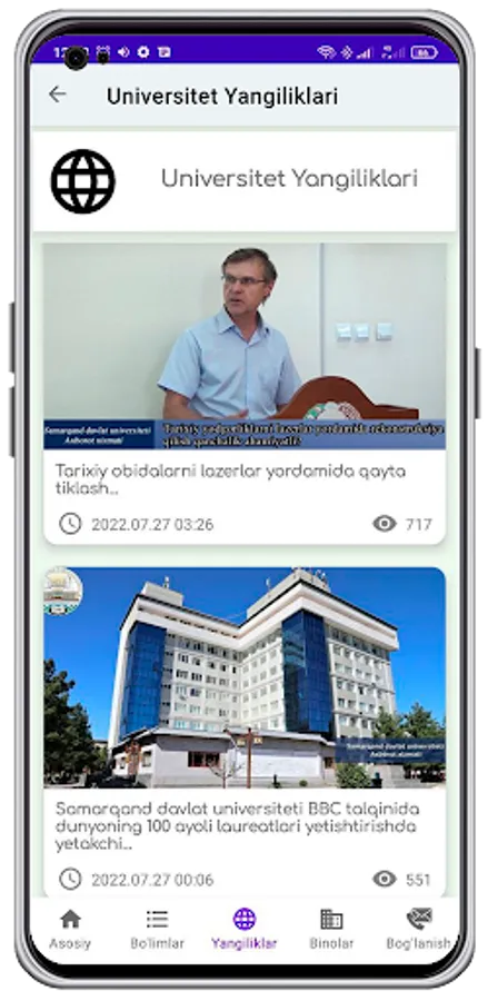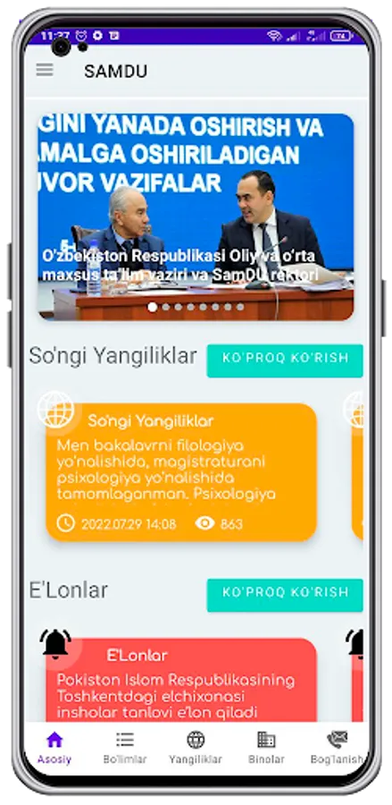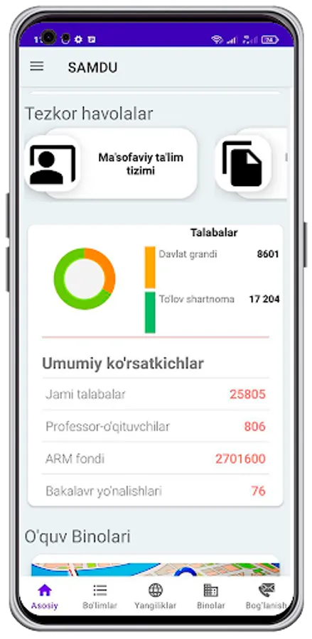 Ushbu dasturda SAMDU haqida , yangiliklar, e'lonlar, grandlar haqida ma'lumotlar olishingiz mumkin. Dastur SAMDU talabalari, o'qituvchilar va ushbu universitetga kirmoqchi bo'lgan abiturentlar uchun foydali hisoblanadi.