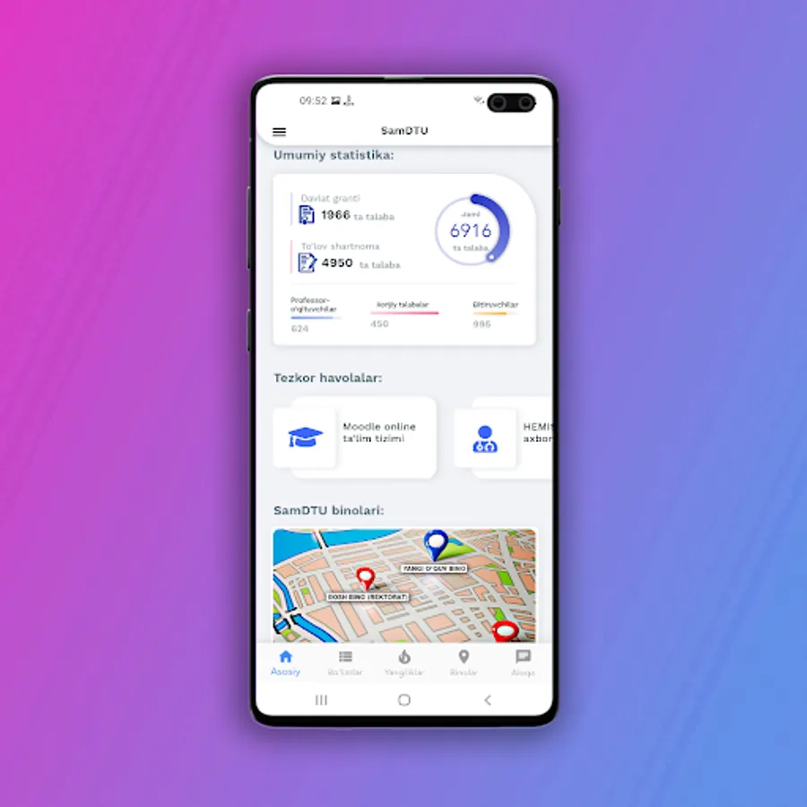 - SamDTU ma'muriyatining aloqa bo'limi ma'lumotlarini olish va ko'plab qulayliklardan foydalanish imkoniyatiga egasiz.
