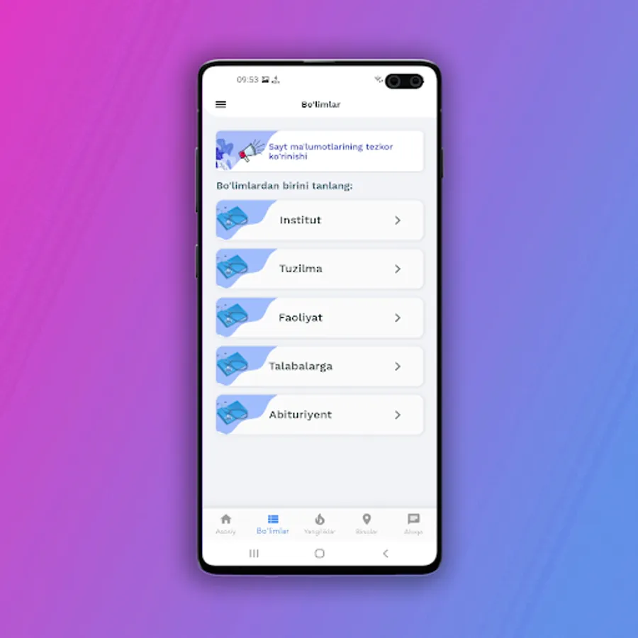 - Eng so'ngi yangiliklari va e'lonlarini tezkor ko'rish,