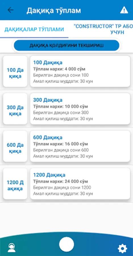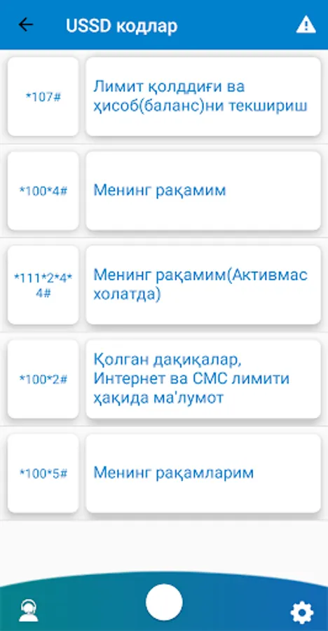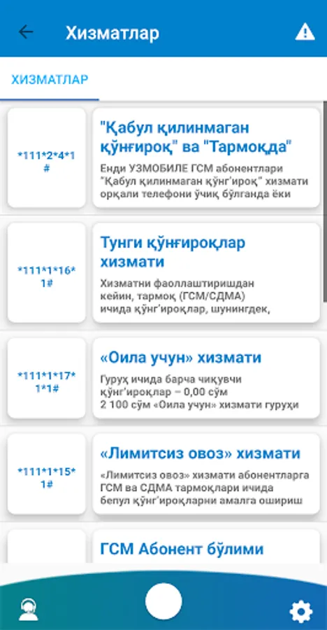 * Balansni tekshirish, barcha raqamlaringiz ro'yxati va bog'langan xizmatlar,