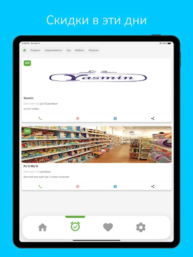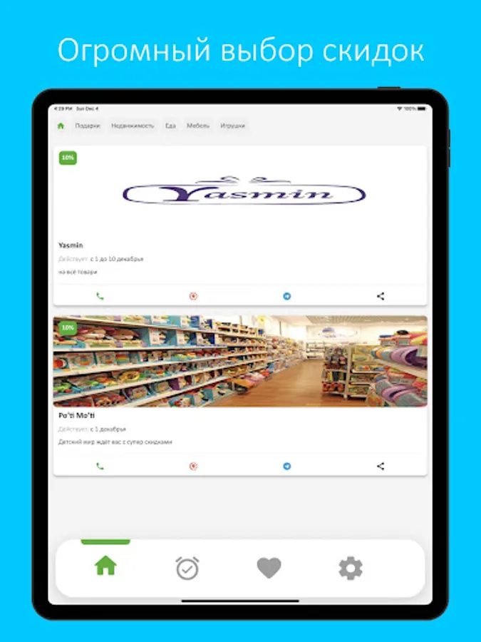 Barcha turdagi chegirmalar va aksiyalar xaqida birinchilardan bo'lib bilib oling.