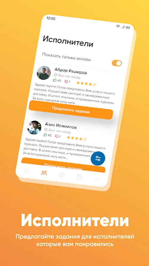 Mutaxassislarni e'lonlar taxtasida, Internetda yoki do'stlar orqali qidirishingiz shart emas. UserUz ilovasidan mutaxassislarni tanlang va ularga murojaat qiling yoki topshiriq yarating va faqat qiziqqan bajaruvchilardan fikr-mulohazalarni oling. Bizning bepul UserUz ilovamiz sizga bir necha daqiqada talablaringizga muvofiq usta yoki mutaxasisslarni butun O’zbekiston bo’ylab topishga yordam beradi.