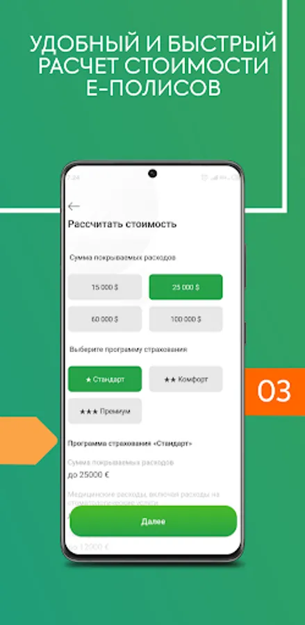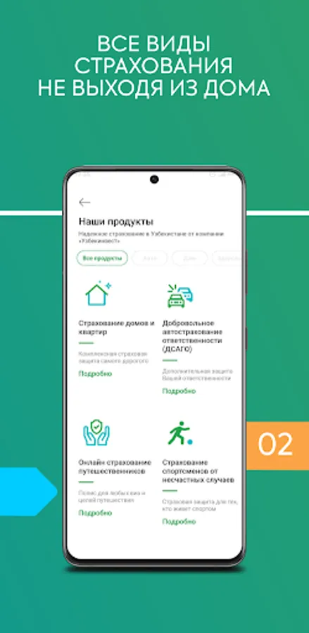 Using our mobile application, you can issue or renew an insurance policy in a few minutes for the following types of insurance: