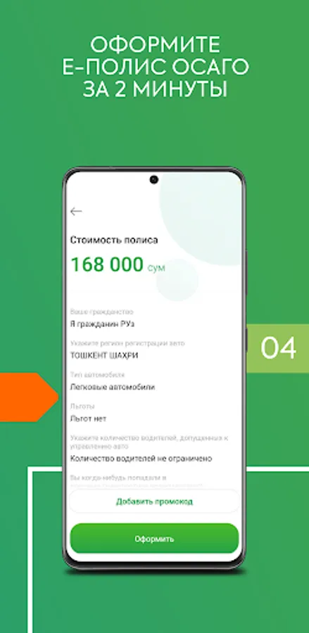 The dynamic and continuous development of information and communication technologies inspired us to create an innovative product that allows you to quickly issue an insurance policy anywhere in the country.