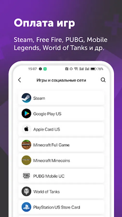 Make any purchases in games more profitable. We guarantee the best conversion rate for payments: Steam, Minecraft, PUBG, World of Tanks, Mobile Legends, Roblox and many others.