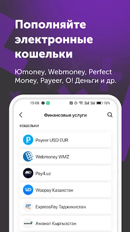 Payments and transfers in Uzbekistan and the world are always at hand. We remember and store the details when paying for services, you just have to choose and pay for the service. Add your favorite payments and pay them in two clicks.