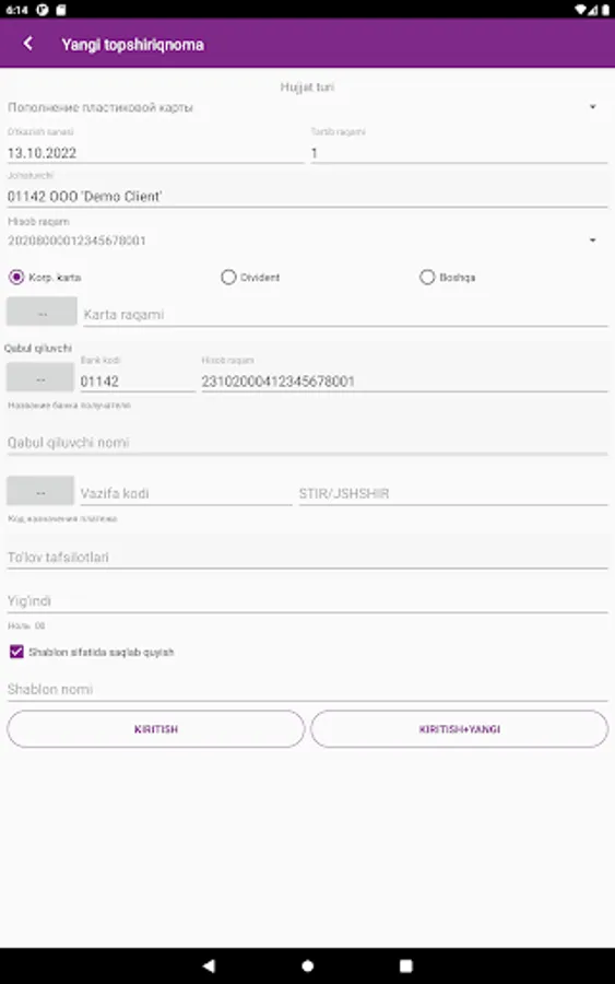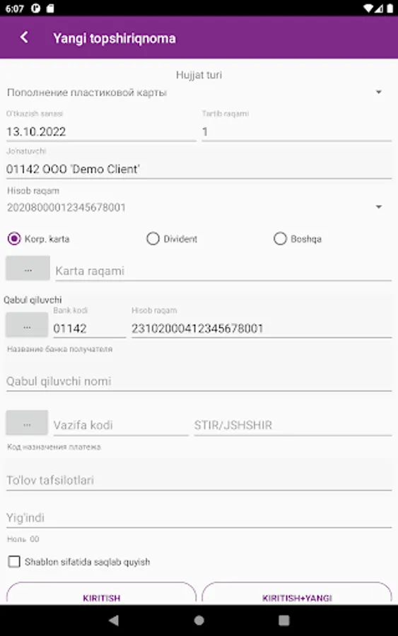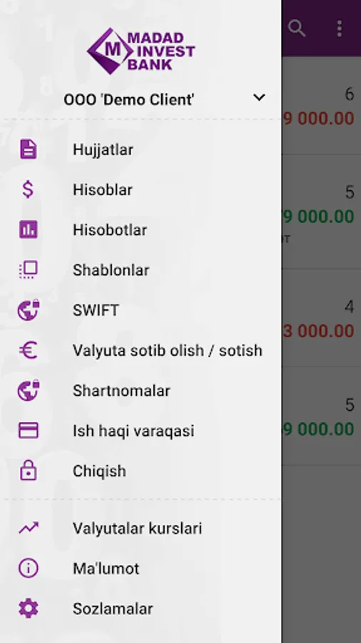 Madad Invest Business is a bank's mobile application for legal entities and private entrepreneurs who are clients of Madad Invest Bank.