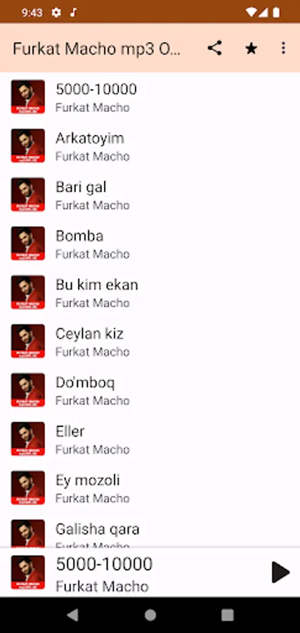 Bu dastur orqali Furkat Machoning qo'shiqlarini oflayn tinglashingiz mumkin