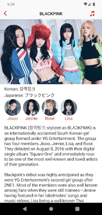 With our app, you can explore detailed member profiles, including fun facts, trivia, and personal information. You can also check out discographies and see each group's history and evolution over time. Whether you want to learn more about your favorite group's past hits or discover new releases, our app has it all.