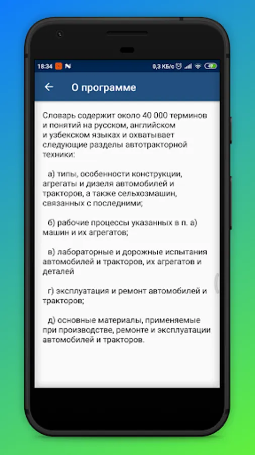 The dictionary contains about 40,000 terms and concepts in Russian, English and Uzbek, and covers the following sections of automotive technology:
