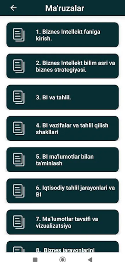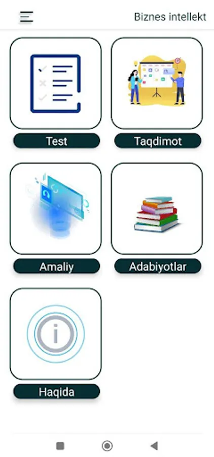 Ushbu dastur biznes intellekt fanini o'rganishga mo'ljallangan bo'lib foydalanuvchi uchun qulaylik yaratish maqsadida dasturda nafaqat ma'ruza matnlari balki video darslar, amaliy va test mashg'ulotlari hamda taqdimotlar keltirib o'tilgan. Dasturni tuzishda Toshkent Davlat Iqtisodiyot Universiteti 2-bosqich talabalari uchun mo'ljallangan "Biznes intellekt" fani o'quv - uslubiy materiallaridan foydalanildi.