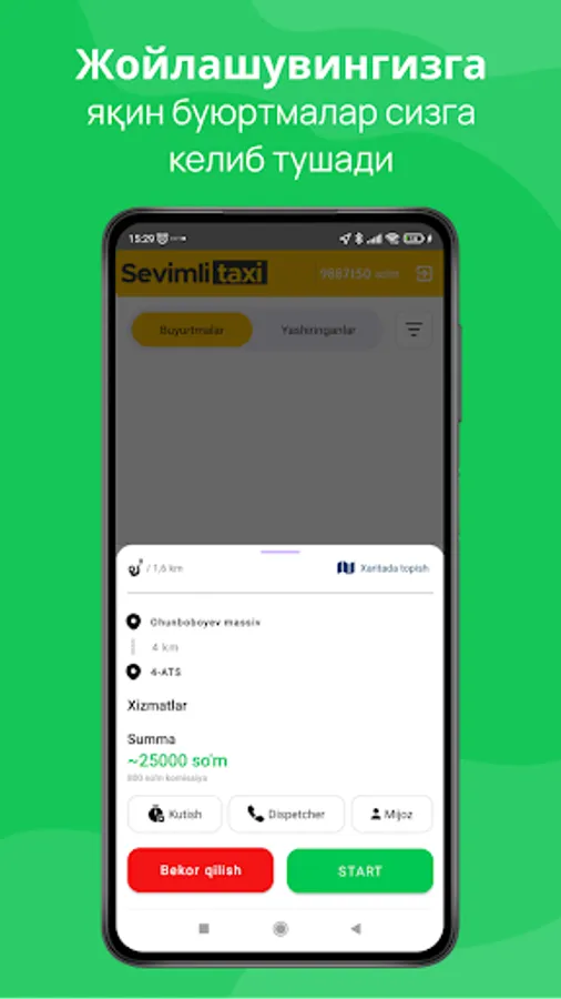 Taksi haydovchisi uchun mobil ilovani o'rnating va undan unumli foydalaning. Foydali sozlamalar, interaktiv xizmatlar va qulay interfeys har bir haydovchiga bir vaqtning o'zida ko'proq buyurtma berishga yordam beradi.