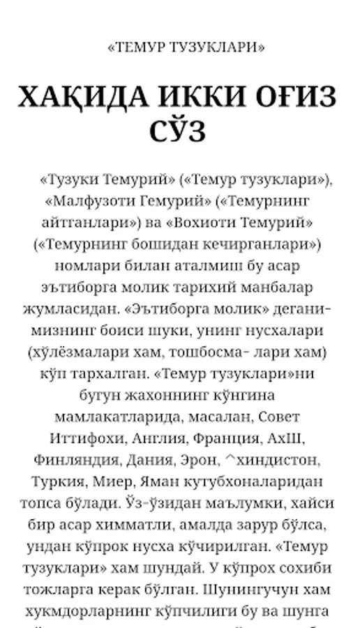 Amir Temur buyuk sarkarda. Amir Temurning hayotini bilmaydigon inson bo'lmasa kerak lekin Amir Temurning oylasi haqida to'liq ma'lumotingiz bormi buyuk sarkarda Amir Temurning farzandlari tar haqida va uning oylasi haqida siz to'liq Temurda uning oylasi haqida siz to'liq Temurizing kit tuzliklari xtaganligi haqida siz ushbu o'zbekcha tarixiy kitobdan Temuriylar haqida to'liq ma'lumot olishingiz mumkin.