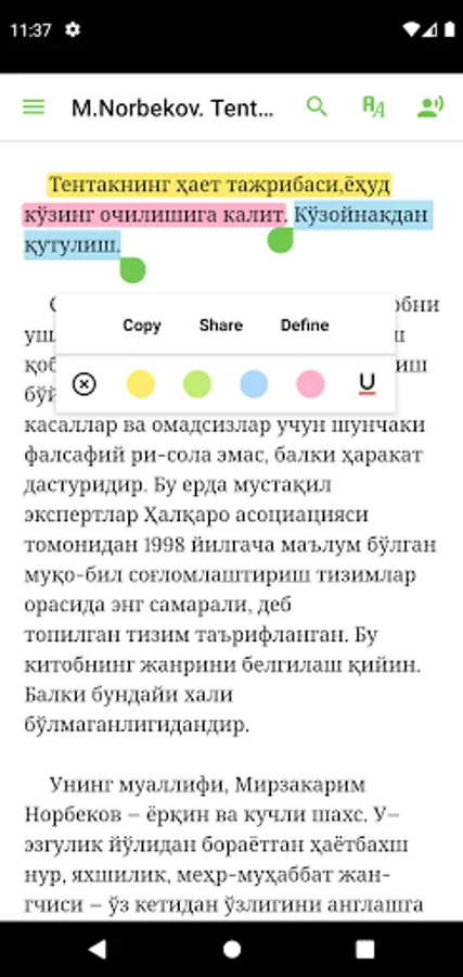 Uning muallifi, Mirzakarim Norbekov - yorqin va kuchli shaxs. U - ezgulik yo'lidan borayotgan hayotbaxsh nur, yaxshilik, mehr-muhabbat jangchisi - o'z ketidan o'zligini anglashga chanqoq bo'lganlarni ergashtirib kelmoqda.