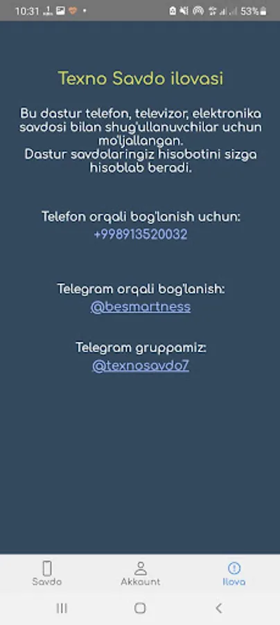 - Kunlik, oylik, yillik hisobotlarni 1-sekundda bilib olasiz.