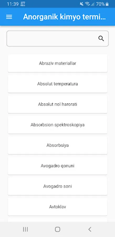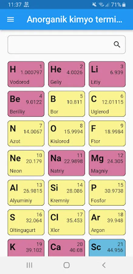 Anorganik kimyo terminlari tezaurusi ilovasi kimyoviy elementlar va ko'plab terminlar haqida sizga atroflicha ma'lumot beradi.