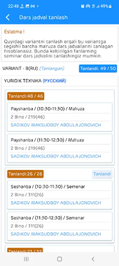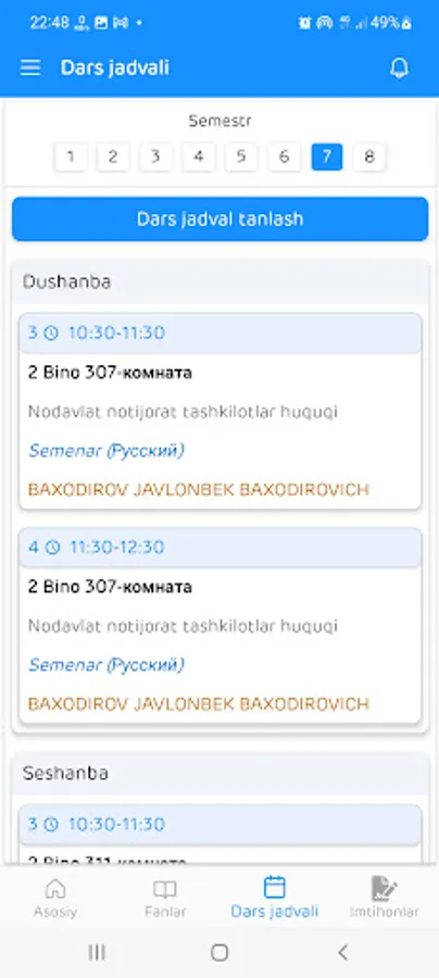 This is mobile application of Tashkent State University of Law. This is for student to see their own scores, attendances, timetables and etc