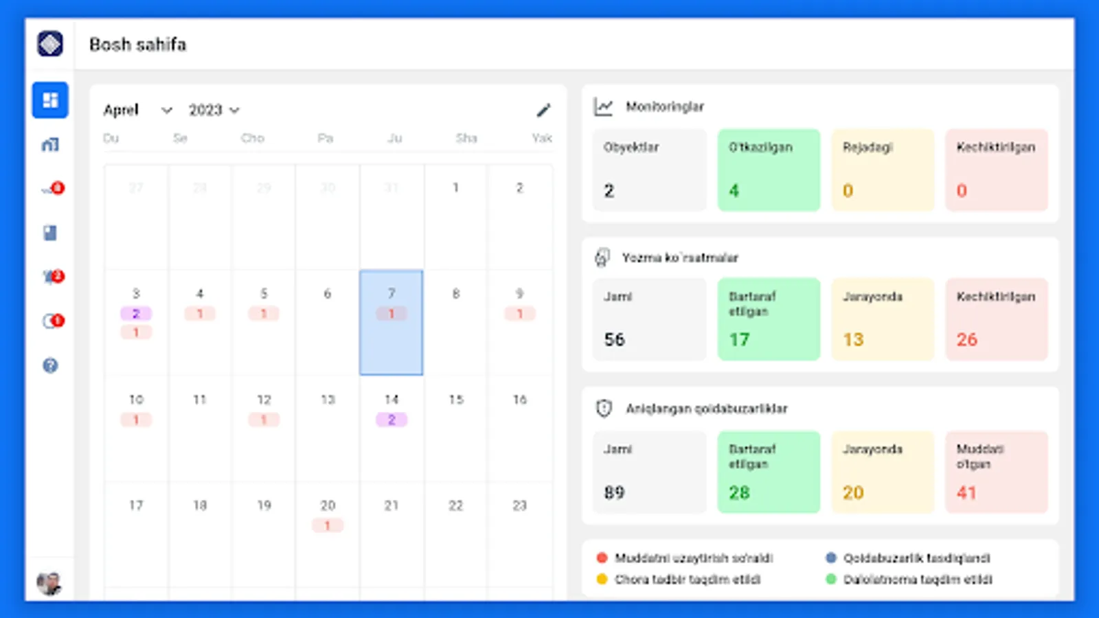 Bu platforma Qurilish sohasida Davlat Nazorati Inspeksiyasi inspektorlarining kundalik ishlarini avtomatlashtirish maqsadida ishlab chiqildi. https://web.ccnis.uz/