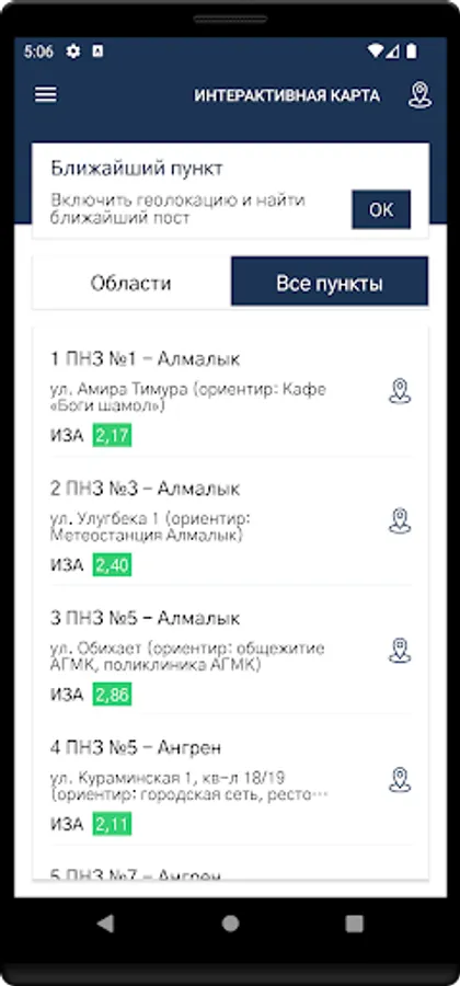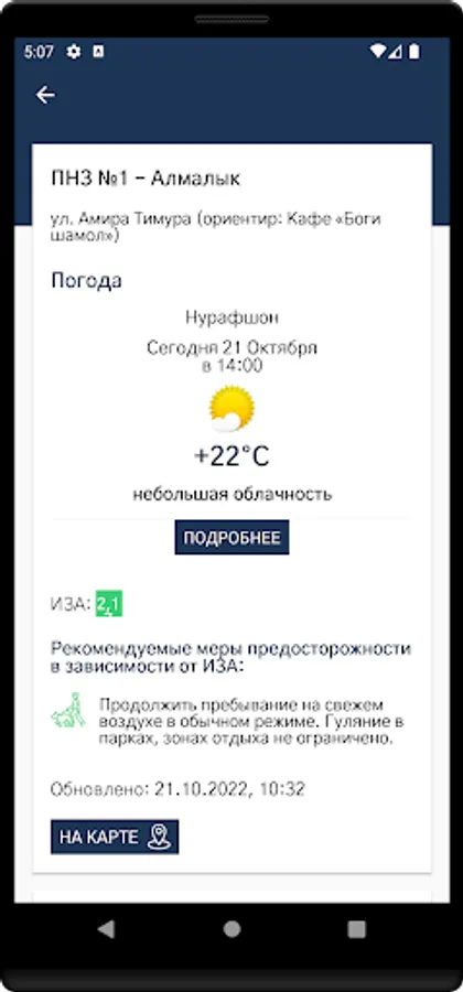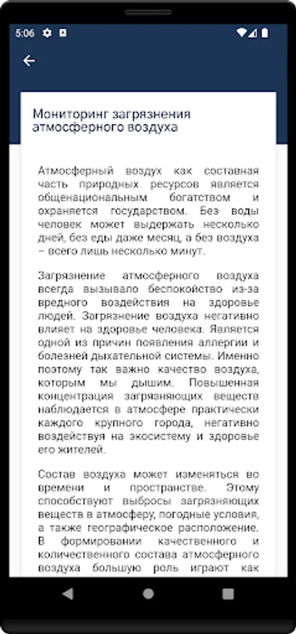 В приложении доступна информация по результатам мониторинга атмосферного воздуха, поверхностных вод и почв.