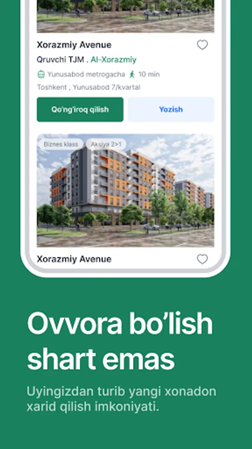 📅 Xonadon egalari bilan uchrashuv: Ilova orqali sotib olmoqchi bo’lgan xonadoningizni ko'rish uchun uchrashuv bron qiling.
