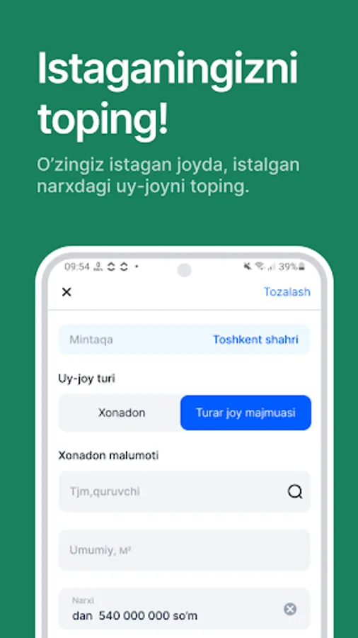 Uysotni hoziroq yuklab oling va orzuingizdagi uyni xarid qiling!