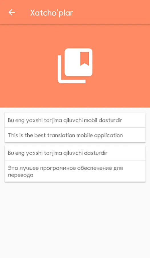 - Tarjima qilgan so'z yoki gaplaringizni "Xatcho'plar" ro'yhatida saqlay olasiz