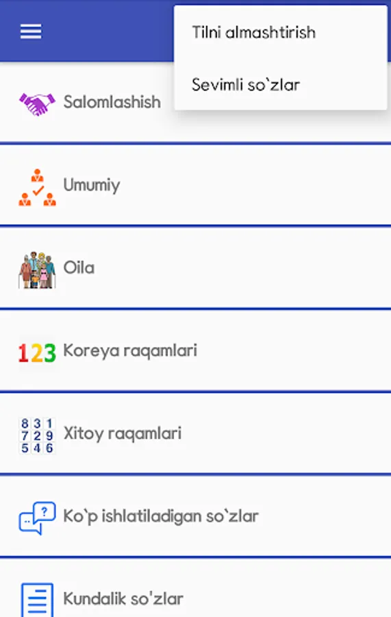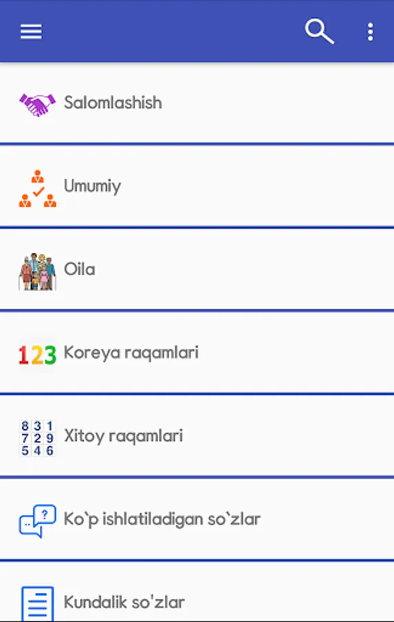 Koreyscha so'zlashgich ko`plab bo'limlardan iborat.