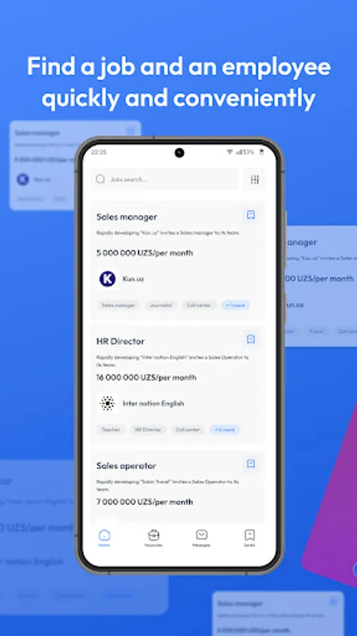 Are you tired of looking for a job or an employee? Jobo will definitely help you. Jobo.uz will help you find the right employee in a short time. Are you tired of looking for a job? Download, register and follow ads from our app
