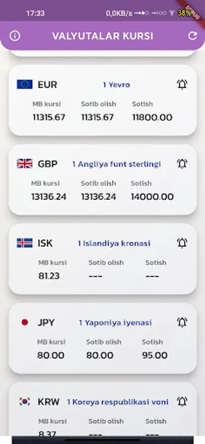 O'zbekiston Markaziy Banki valyutalar kursi online.
