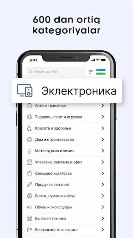 Vibo.uz sizga maishiy elektronika, mashinalar va kiyim-kechak kabi 40 dan ortiq asosiy toifadagi va 600 dan ortiq kichik toifadagi mahsulotlarni taqdim qila oladi.