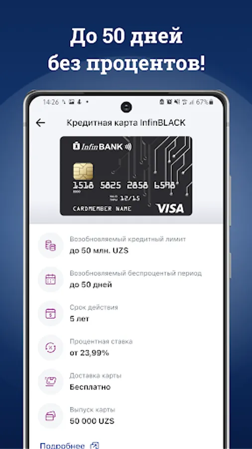 ✔ Support. Need money urgently? Submit an application for a credit card and receive money immediately in the mobile app without leaving your home.