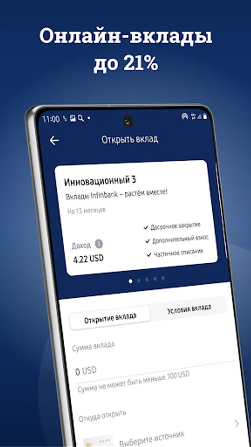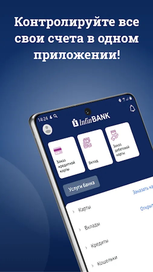 Get a loan online without leaving your home, open and manage deposits, transfer money, pay public utility bills together with InfinBANK.