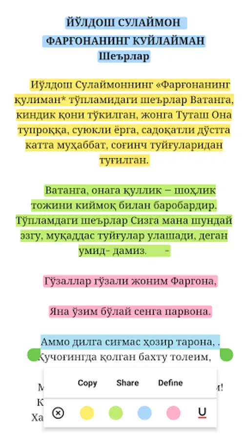 Yashnashida uning kongil mulqi hisoblangan ijodkorlar alohida o ‘rin egallaydi. Madaniyatimiz tarixida Q o'qon adabiy muhiti alohida sahifani tashkil etishi hech kimga sir emas. Ayniqsa, Qo'qon xoni, iste'dodli shoir Amir Umarxon davrida (1810-1822-yillar) adabiyot g 'oyat rivojlandi. ... She'rda baxmalday yumshoq maysa bilan qoplangan so'qmoqdan ovozini baralla qo'yib, kuylab borayotgan xayolparast lirik qahramonning katta yo'lga chiqish orzusi gzal va. ta'sirchan ifodalangan. Nihoyat: Katta yo 'Igci chiqib oldim, Qoqila boshladim katta uo'Idayotgan