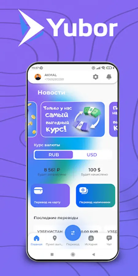 We present you the YUBOR app - money transfers, your convenient and safe way to send money to your family and friends in Uzbekistan, Tajikistan, Kyrgyzstan and Kazakhstan.