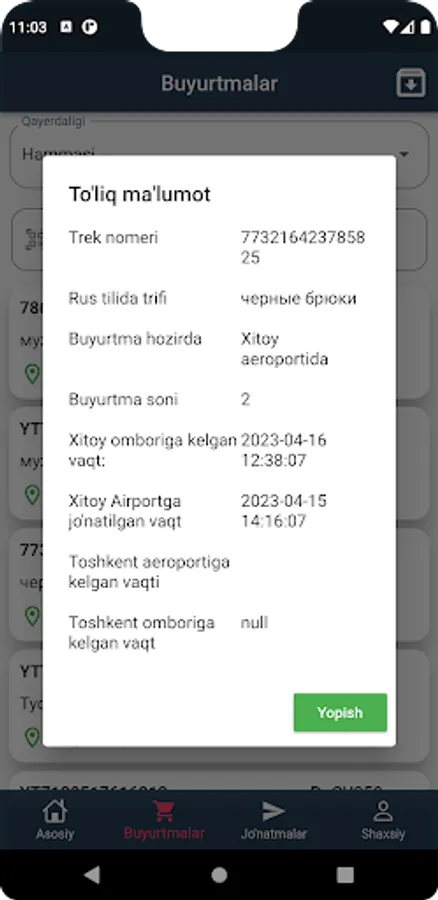 Kiyimlar, sumkalar, texnikalar, gadjetlar, texnika qismlari, bolalar uchun buyumlar, oshxona anjomlari kabilarni yetkazib beramiz!