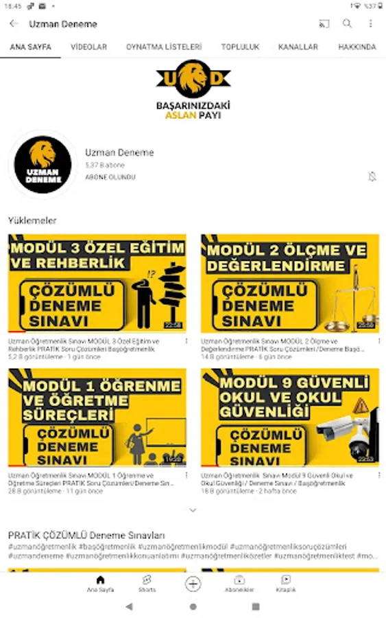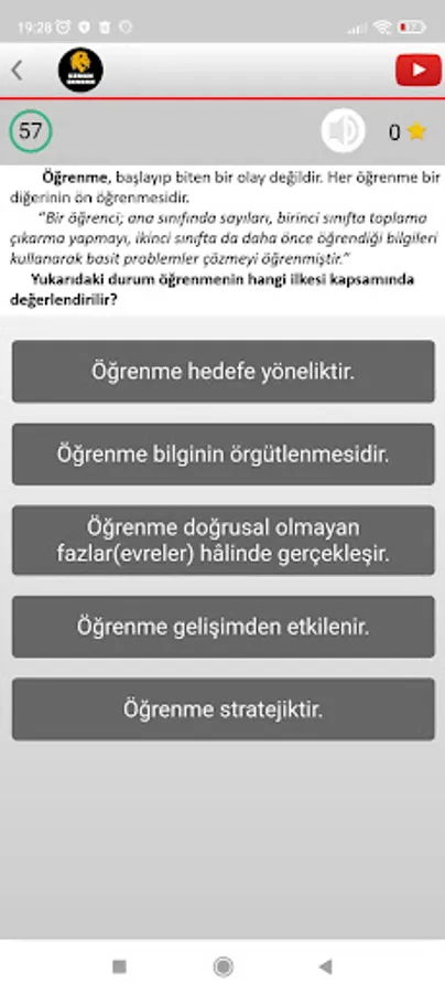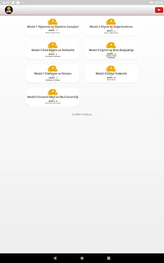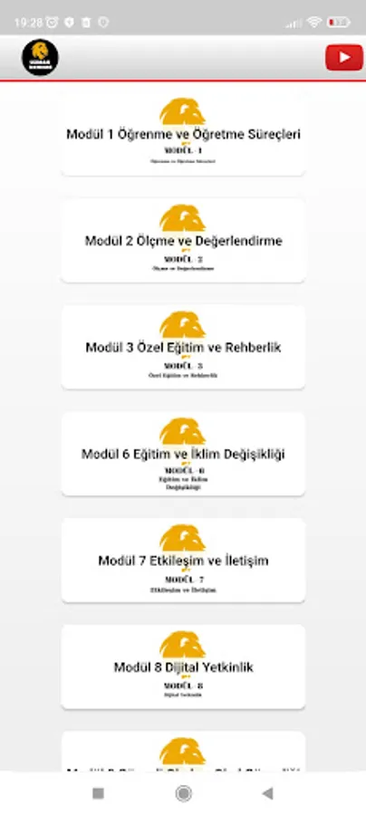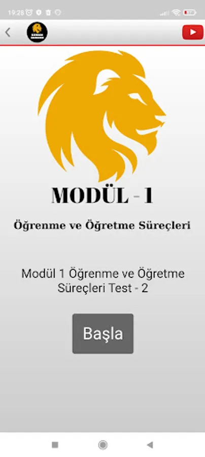 The application contains areas where you can access the tests from each module and the solved videos about the tests, and offers access to our Youtube channel.