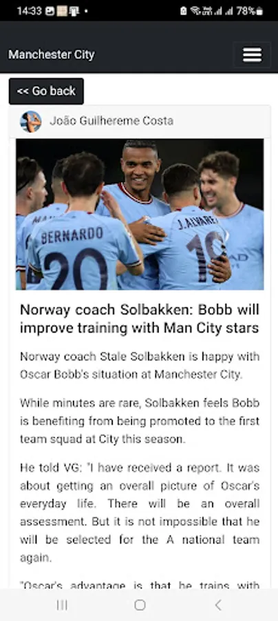 In this app you acan stay informed of everything that happens with Manchester City (Man City).