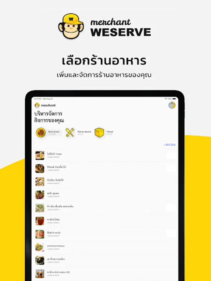 WESERVE Merchant for restaurant partners To handle orders Manual menu