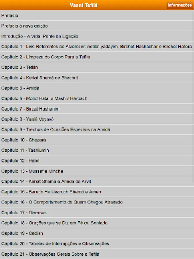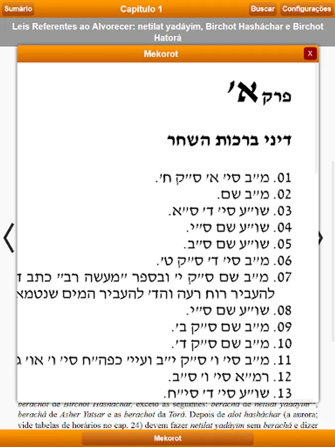 The work also includes laws on tefillin, Keriat Shema, the Amidah, Chazará, Tashlumin, Hallel, Baruch Hu Uvaruch shemo and amen, late in tefillah, grammatical rules of Lashon hakodesh and Jewish timetables.