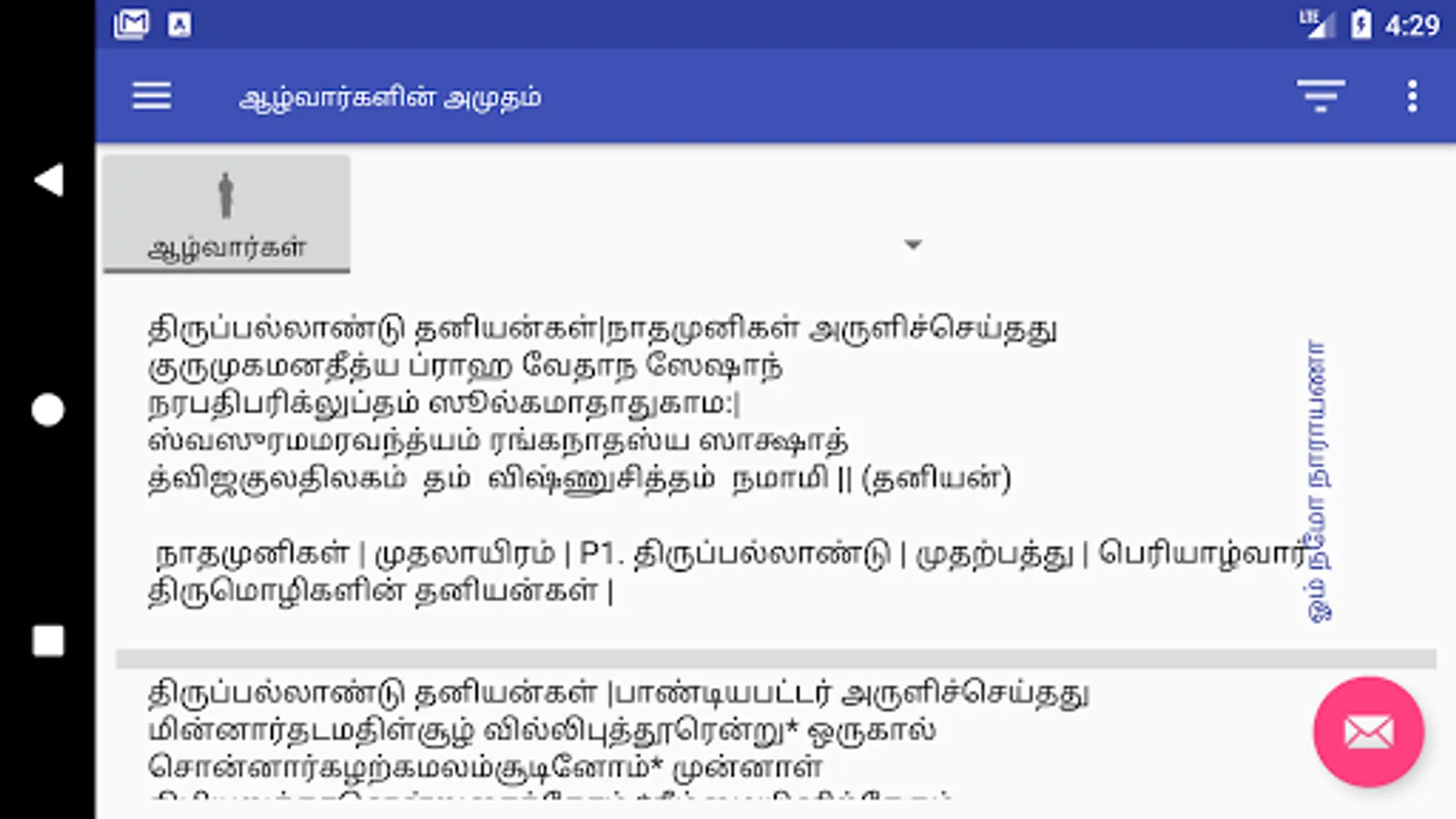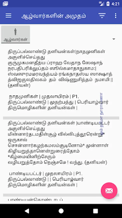 1. Complete set of Divyaprabandam including Taniyangal in one list. Just keep scrolling to read all the paasurams.