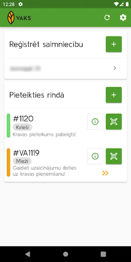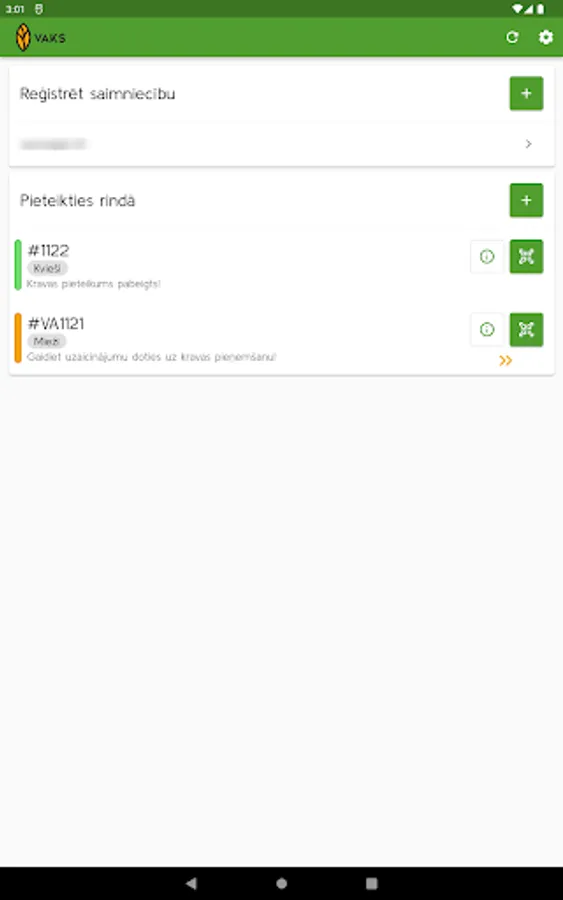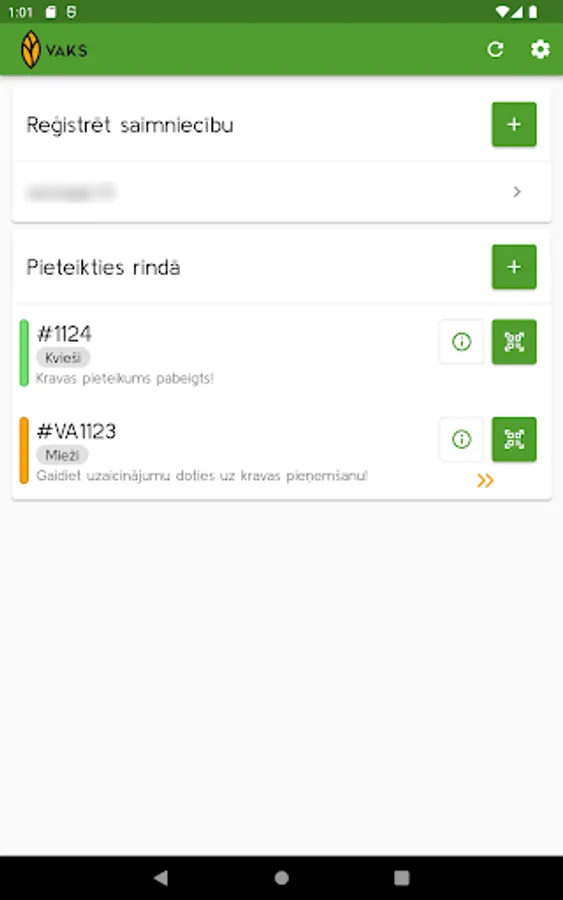 VAKS electronic queue management mobile application for registration of incoming cargo when entering the elevator territory.