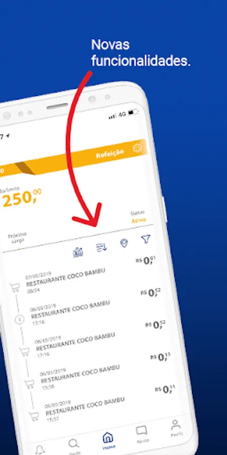 For the mobile screen, the user can consult balance, extract, accredited network, obtain indication establishments for shopping, change password and access graphs showing how are the card spending.