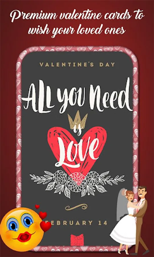 Enjoy sharing Premium Valentine cards and Special Valentine emoji to your loved ones.