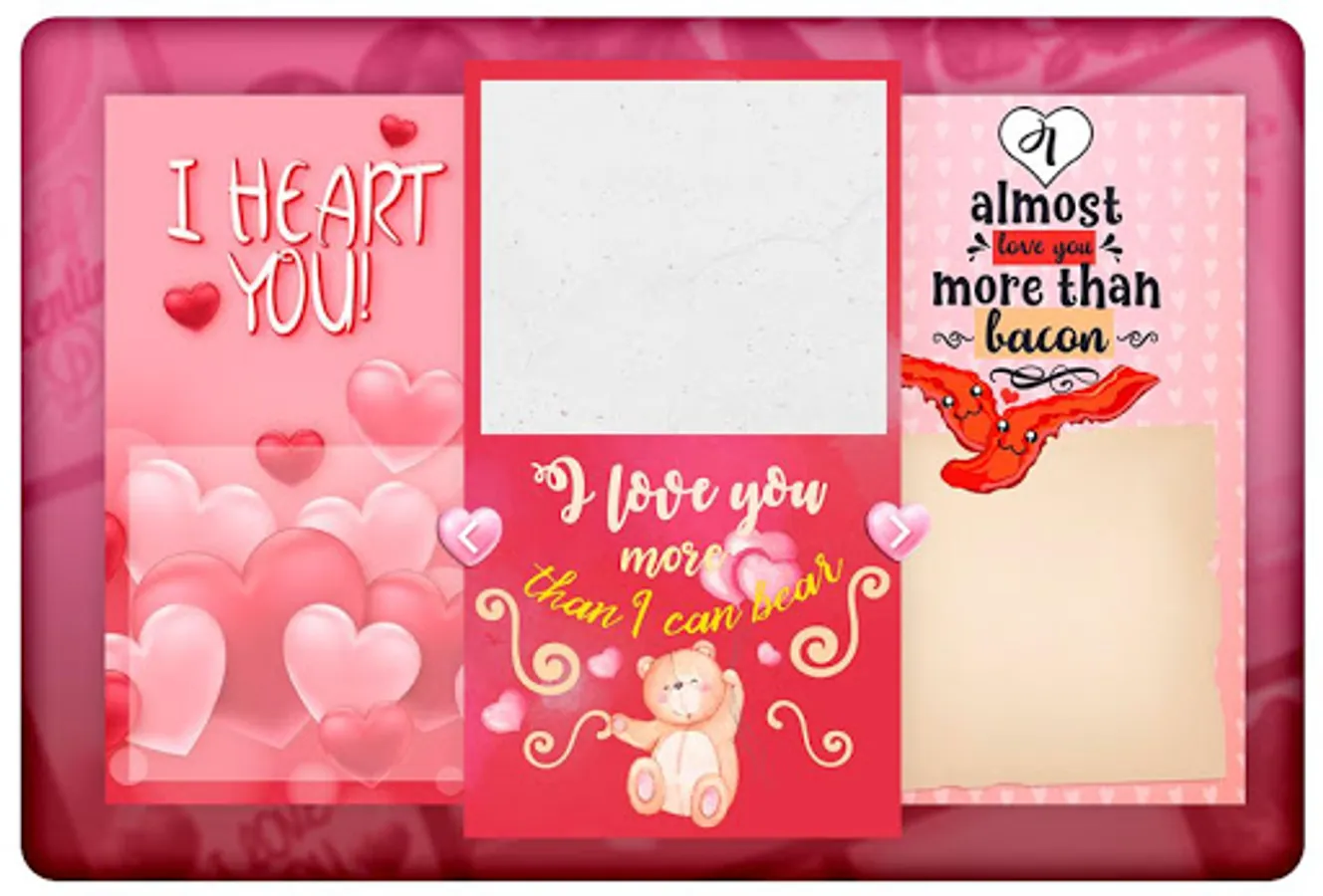 Install this Valentine Card Maker π Love Ecards and give a personal touch to your Valentine s day greetings! Plan February 14th in advance and show your darling that you are madly in love. Choose DIY love cards with red or pink background and write romantic love quotes and sayings in colorful font style. Send your Valentine wishes even to your family and friends and show them your love and support. Don't wait any longer and get this Valentine card designer app today!