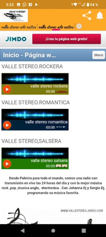 Valle Stereo is an online station, oriented to the dissemination of all musical genres, located in the city of Palmira, Valle del Cauca, Colombia and with more than one (1) year of experience. It was officially founded on April 22, 2012, being recognized by different organizations, including www.colombia.com, a portal that groups together the most important radio stations in Colombia.