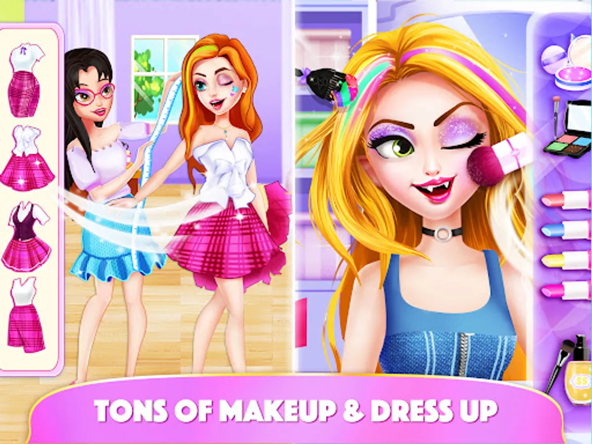 > Dress up your character and match all the outfits, hairstyles, and makeup look