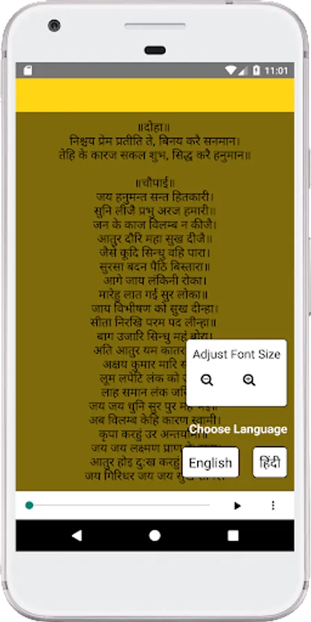 * zoom in and zoom out the hanuman chalisa and aarti text.